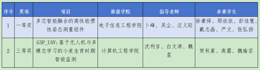 本届“挑战杯”竞赛以“青春为中国式现代化挺膺担当”为主题,共吸引全国2700余所高校的40多万件作品参赛,参与学生超过300万人。其中,“人工智能+”专项赛参赛作品约1.8万件,经层层选拔,643件作品进入全国决赛。我校电子信息工程学院推报的“多芯智能融合的高性能惯性姿态测量组件”项目入围终审决赛并斩获一等奖,计算机工程学院推报的“GSP_UAV:基于无人机与多模态学习的小麦生育时期智能监测”项目荣获三等奖。“人工智能+”专项赛重点关注人工智能技术在经济社会各领域的创新应用,涵盖智能制造、智慧农业、数据安全、无人系统等多个前沿方向。我校两支参赛团队凭借扎实的研究基础、清晰的技术路线和突出的实践能力在比赛中表现优异,展现了我校学生在人工智能领域的创新能力和科研水平。