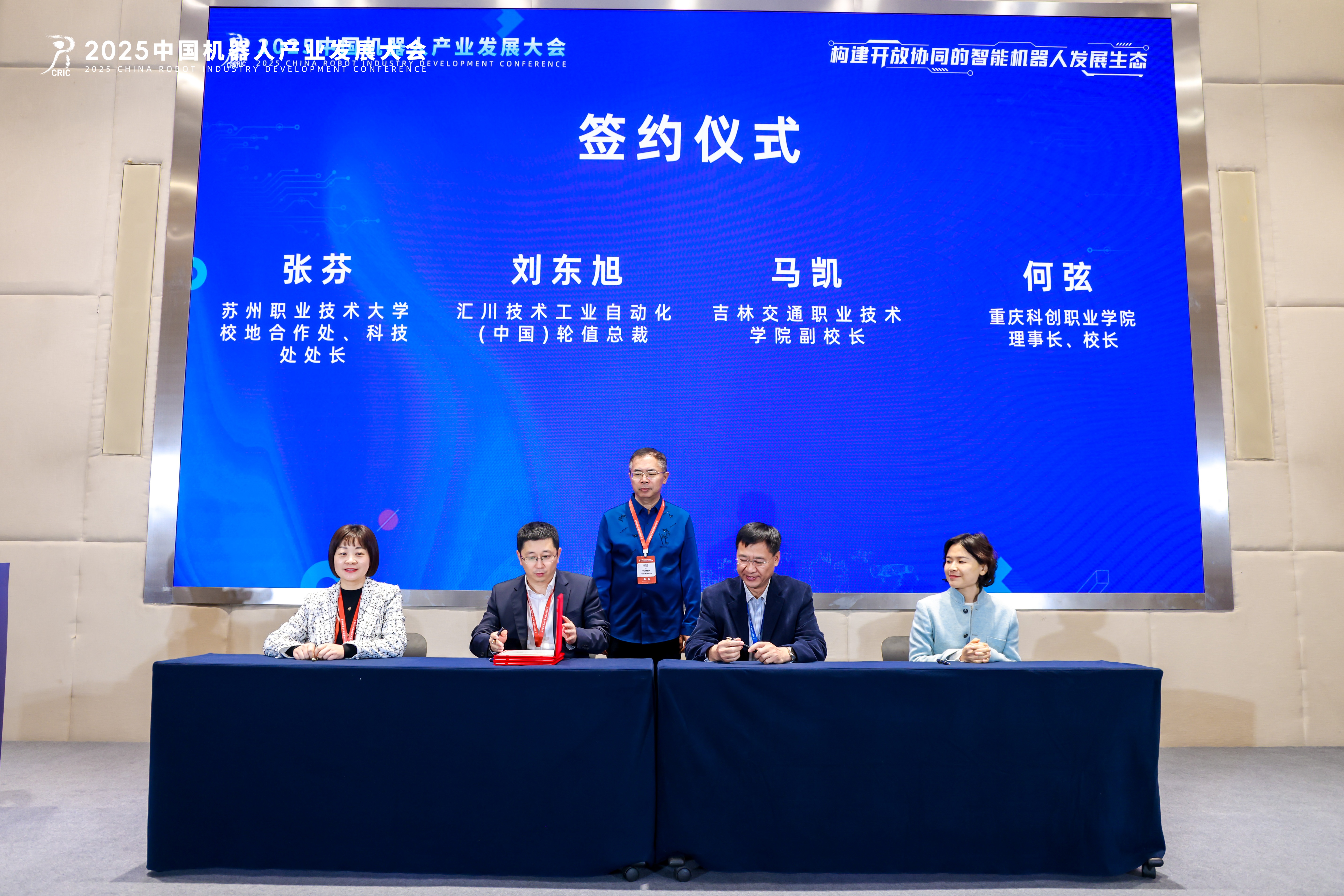 校地合作发展处处长张芬代表学校与苏州汇川技术有限公司、吉林交通职业技术学院、重庆科创职业学院签署了战略合作协议,各方聚焦机器人与智能制造领域,构建“人才培养+技术研发+项目实践+社会服务”四位一体的产教融合协同体系,通过共建现场工程师学院、共享实训资源、共育“双师型”师资、共推技术认证,打造立足苏州、辐射华东产教的融合创新平台,为区域产业转型升级提供坚实的人才支撑与技术赋能。
