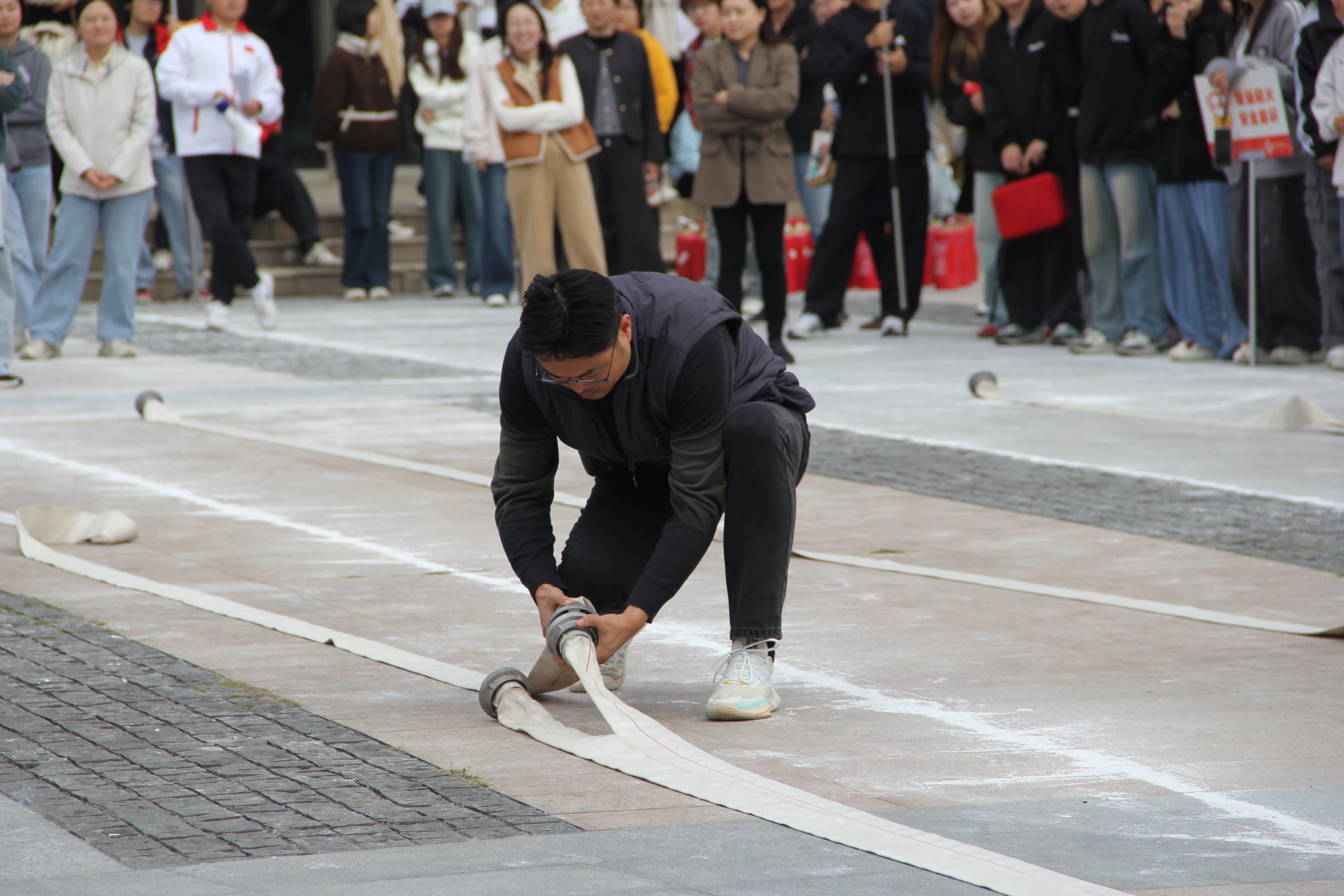 本次消防运动会的竞赛环节设置紧扣实战需求,设男女灭火毯灭油盘火、男女灭火器灭电器火、男女消防水带连接等六个项目。赛场上师生同台竞技、奋力拼搏,气氛紧张热烈,展现出良好的消防安全素养与团队协作精神。经过激烈角逐,各奖项尘埃落定。教工团体中,管理学院斩获第一名,马数体联队、商学院获第二名,教育与人文学院等三学院获第三名;学生团体里,电子信息工程学院摘得桂冠,商学院、艺术学院获第二名,管理学院等三学院获第三名。