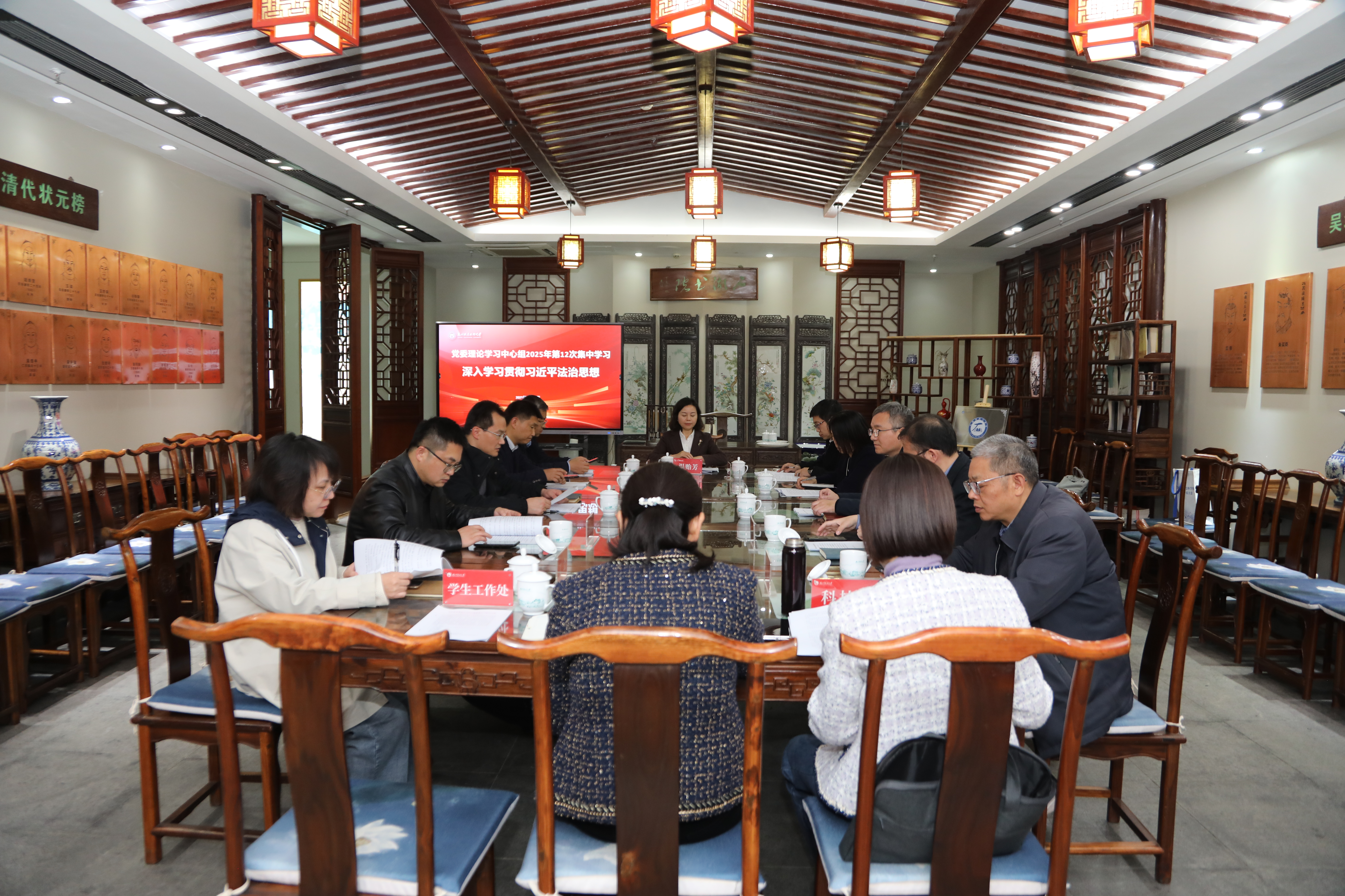 12月19日,学校召开党委理论学习中心组2025年第12次集中学习会,深入学习贯彻习近平法治思想。校党委理论学习中心组成员,相关职能部门主要负责人参加了学习会。会议由校党委书记温贻芳主持。