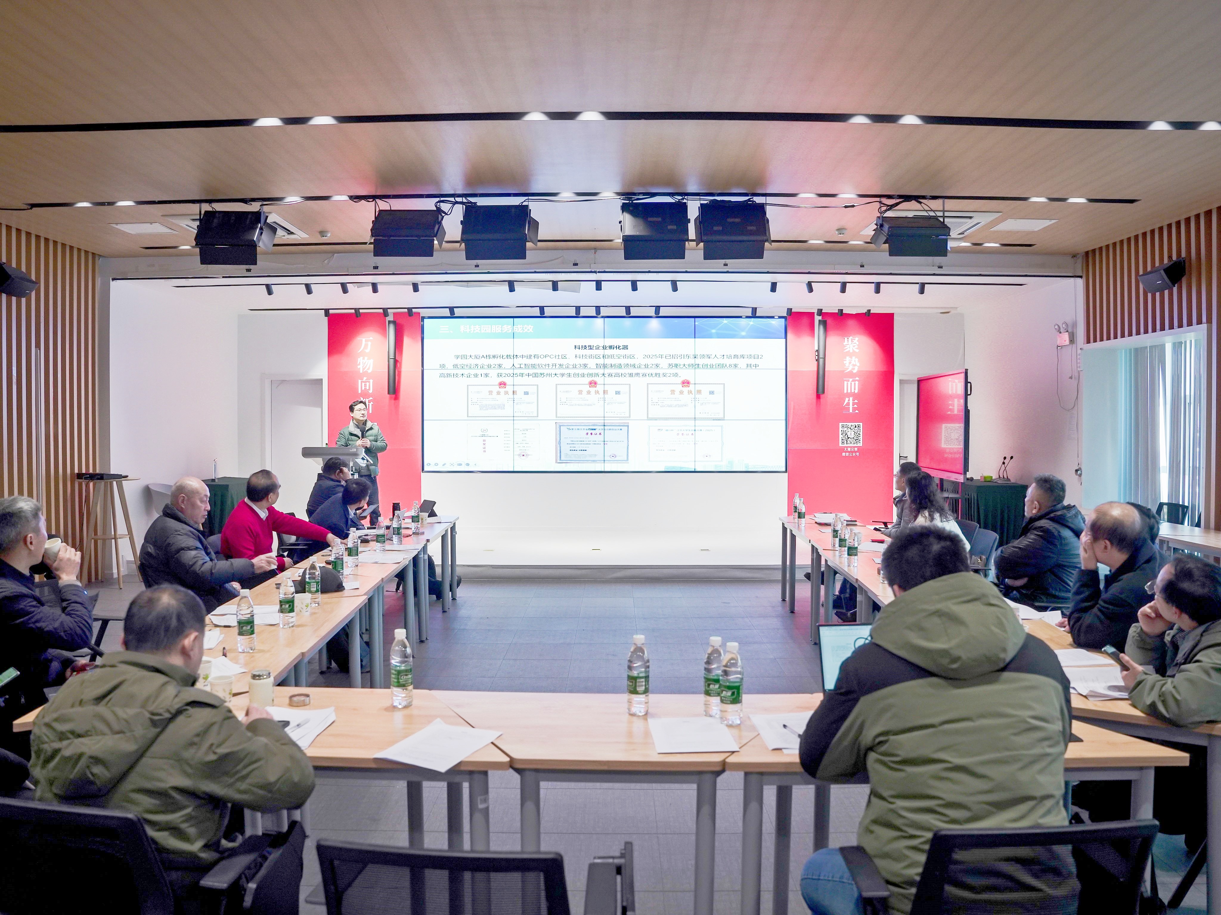 2025年,学园公司贯彻落实学校“大学生众创空间+科技型企业孵化器”双轮驱动发展战略,新引进东吴领军人才(培育库)项目等企业18家,科技企业占比达78%,产业集聚效应明显。新引进的苏州风氢源能源科技有限公司通过江苏省高新技术企业认定,实现园区高新技术企业零的突破。公司积极孵化大学生OPC创业企业,服务教师团队创办企业参加创新创业大赛,推动入园企业与学院共建生产性实践基地,通过订单班、岗位实践等形式深化校企合作,有效赋能学校产教融合向纵深发展。