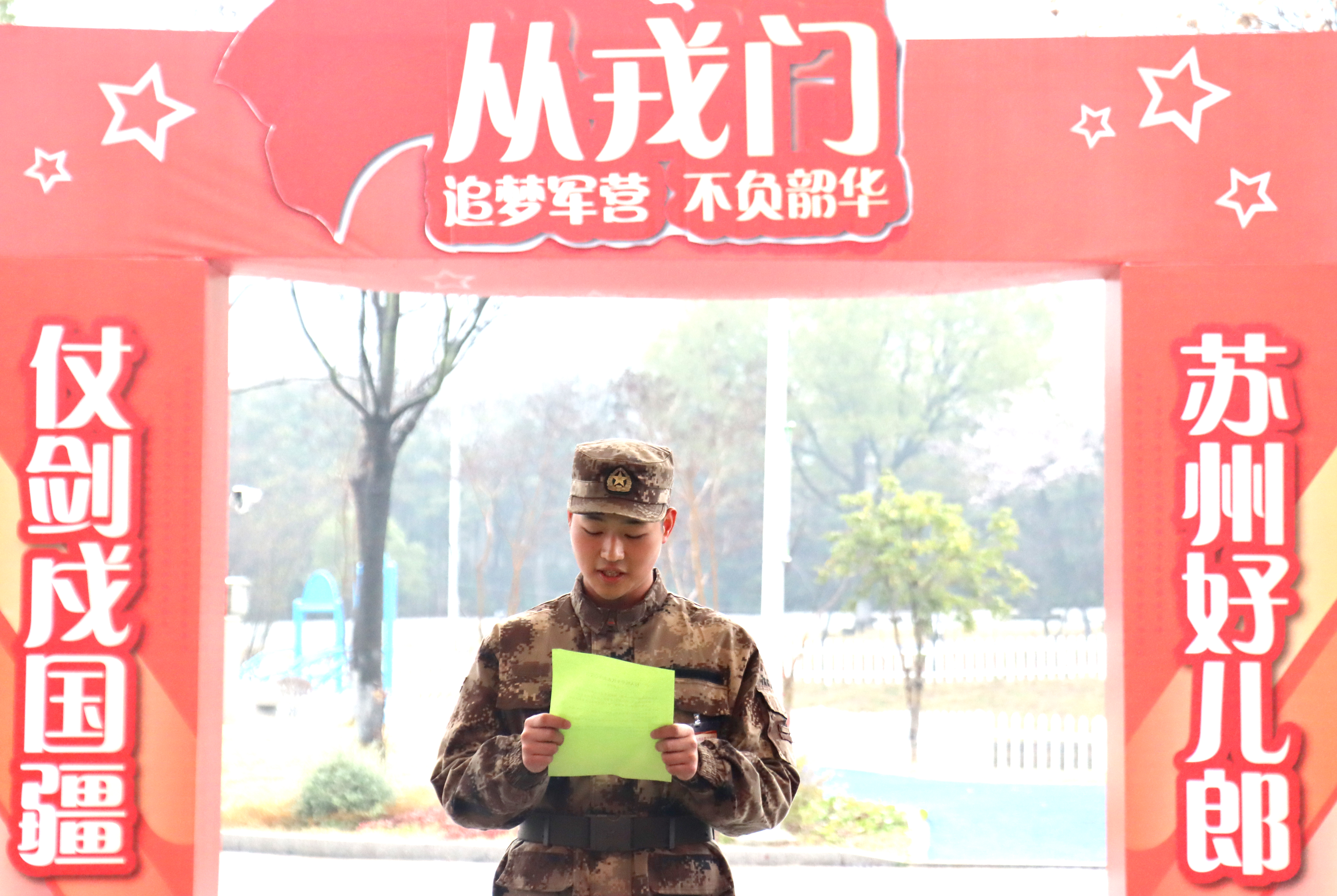 张军代表学校向全体新兵表示祝贺,向吴中区人武部、学校征兵工作人员及新兵家长表示感谢。他勉励新兵:一要坚定信念、听党指挥,做党和人民的忠诚卫士;二要严守纪律、刻苦训练,尽快完成从地方青年到合格军人的转变;三要珍惜荣誉、建功立业,为军旗添彩、为母校争光。他表示,学校将全力落实拥军优抚政策,做好后方保障,当好新兵的坚强后盾。